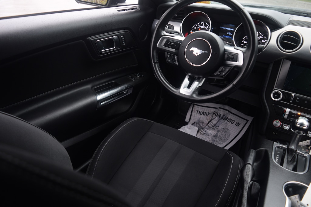 THIS CAR ALSO INCLUDES THE FOLLOWING FEATURES AND OPTIONS:Equipment Group 101A (AM/FM Stereo w/MP3 Player, Body-Color Blade Decklid Spoiler, Cloth Bucket Seats, Dual-Zone Automatic Temperature Control, Reverse Sensing System, SiriusXM Radio, SYNC 3 Communications & Entertainment System, and Wheels: 18 x 8 Machined-Face Aluminum), Ford Safe & Smart Package (Adaptive Cruise Control, Automatic High Beam, Lane-Keeping Alert, Pre-Collision Assist w/Pedestrian Detection, and Rain-Sensing Windshield Wipers), Wheel & Stripe Package (Wheels: 19 x 8.5 Machined-Face Aluminum), 4-Wheel Disc Brakes, 6 Speakers, ABS brakes, Active Valve Performance Exhaust, Air Conditioning, Alloy wheels, AM/FM radio, AM/FM Stereo, Auto-dimming Rear-View mirror, Brake assist, Bumpers: body-color, Compass, Delay-off headlights, Driver door bin, Driver vanity mirror, Dual front impact airbags, Dual front side impact airbags, Electronic Stability Control, Emergency communication system: 911 Assist, Exterior Parking Camera Rear, Four wheel independent suspension, Front anti-roll bar, Front Bucket Seats, Front Center Armrest, Front reading lights, Fully automatic headlights, Illuminated entry, Knee airbag, Leather Shift Knob, Low tire pressure warning, Occupant sensing airbag, Outside temperature display, Overhead airbag, Overhead console, Panic alarm, Passenger door bin, Passenger vanity mirror, Power door mirrors, Power steering, Power windows, Radio data system, Rear anti-roll bar, Rear window defroster, Remote keyless entry, Security system, Silver Tape Stripe, Speed control, Speed-sensing steering, Speed-Sensitive Wipers, Split folding rear seat, Steering wheel mounted audio controls, SYNC Communications & Entertainment System, Tachometer, Telescoping steering wheel, Tilt steering wheel, Traction control, Trip computer, Variably intermittent wipers, Voice-Activated Touch-Screen Navigation System, Voltmeter, and Wheels: 17 Sparkle Silver-Painted Aluminum.